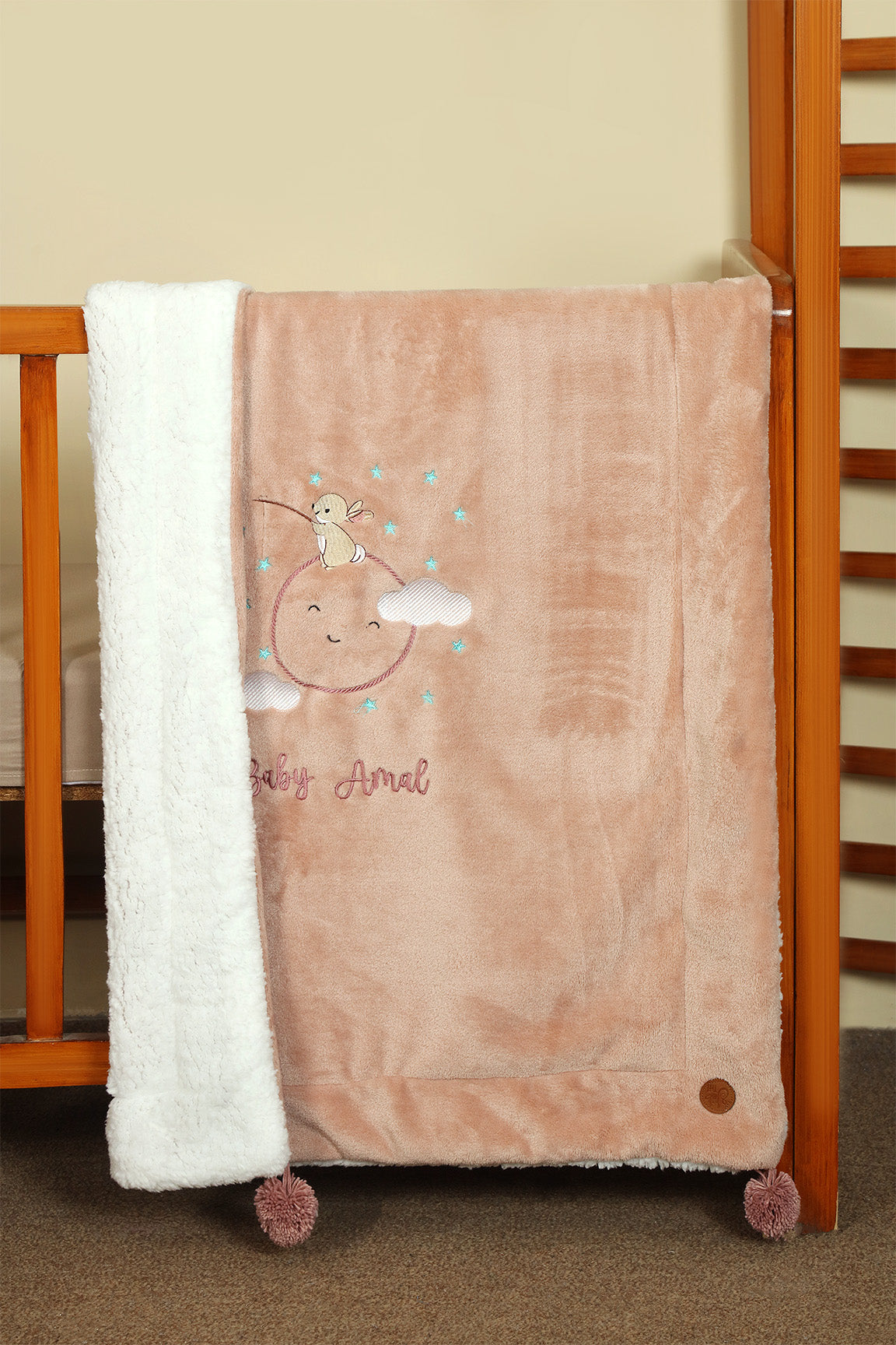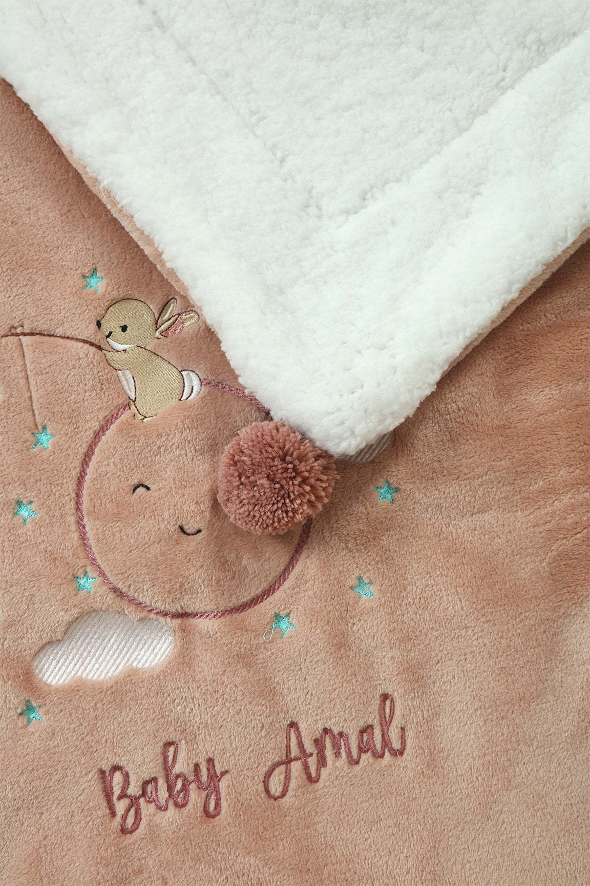 Personalized Name Embroidered Sherpa Baby Blanket-Rose Dust