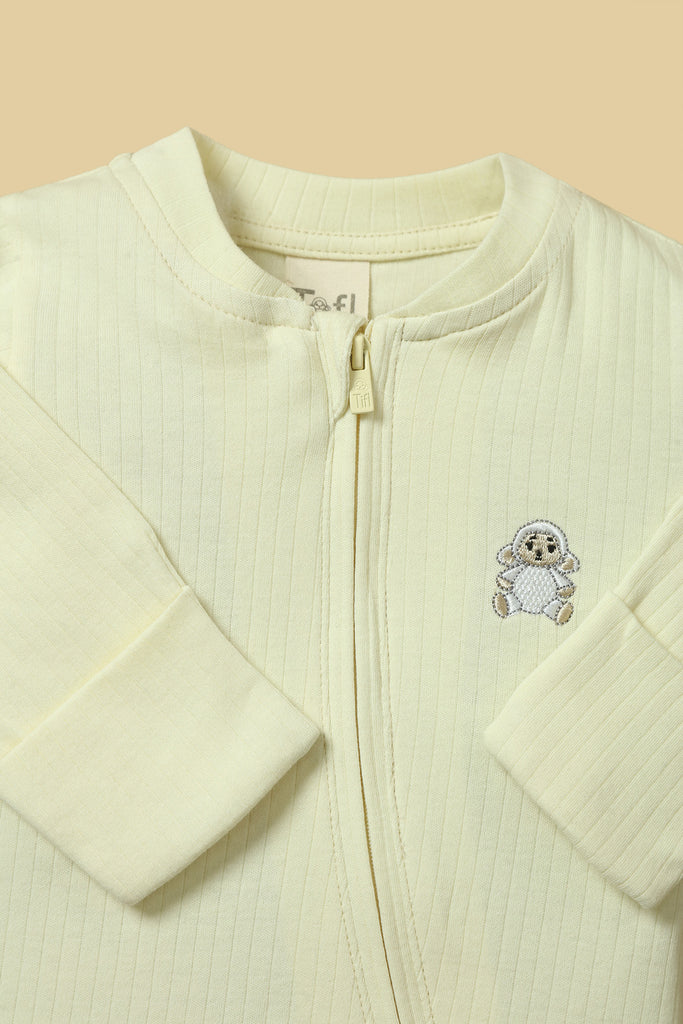 Embroidered Double Zipper Haml Baby Sleepsuit Yellow