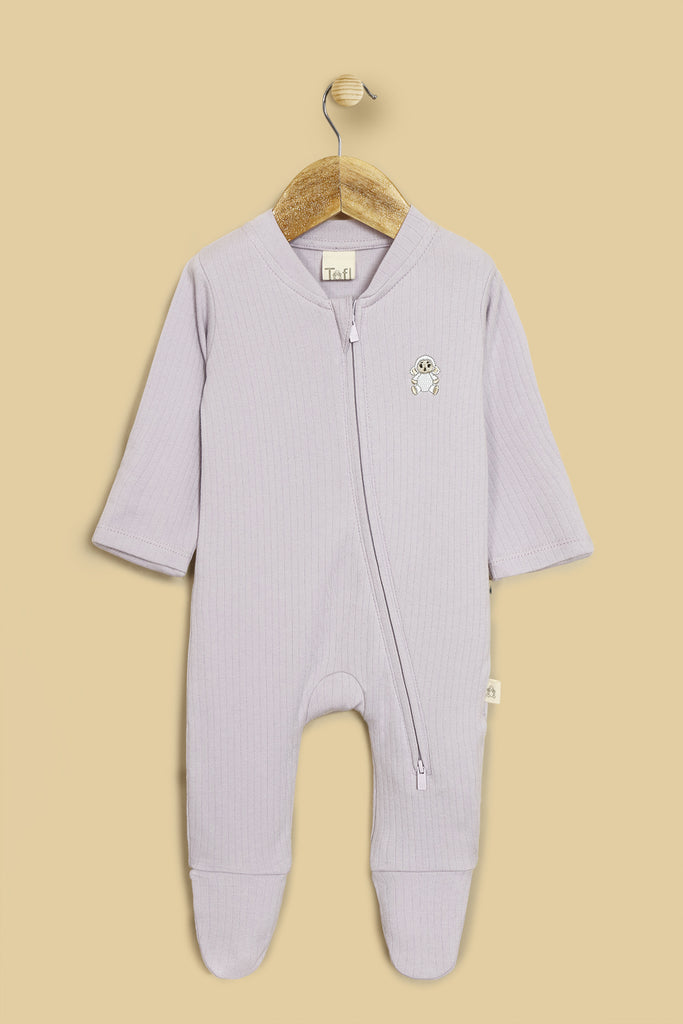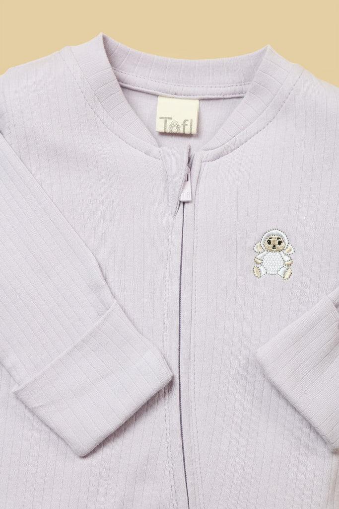 Embroidered Double Zipper Haml Baby Sleepsuit Lilac