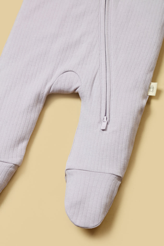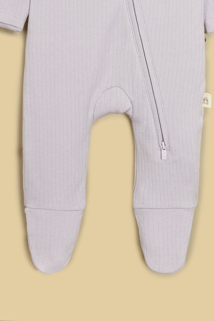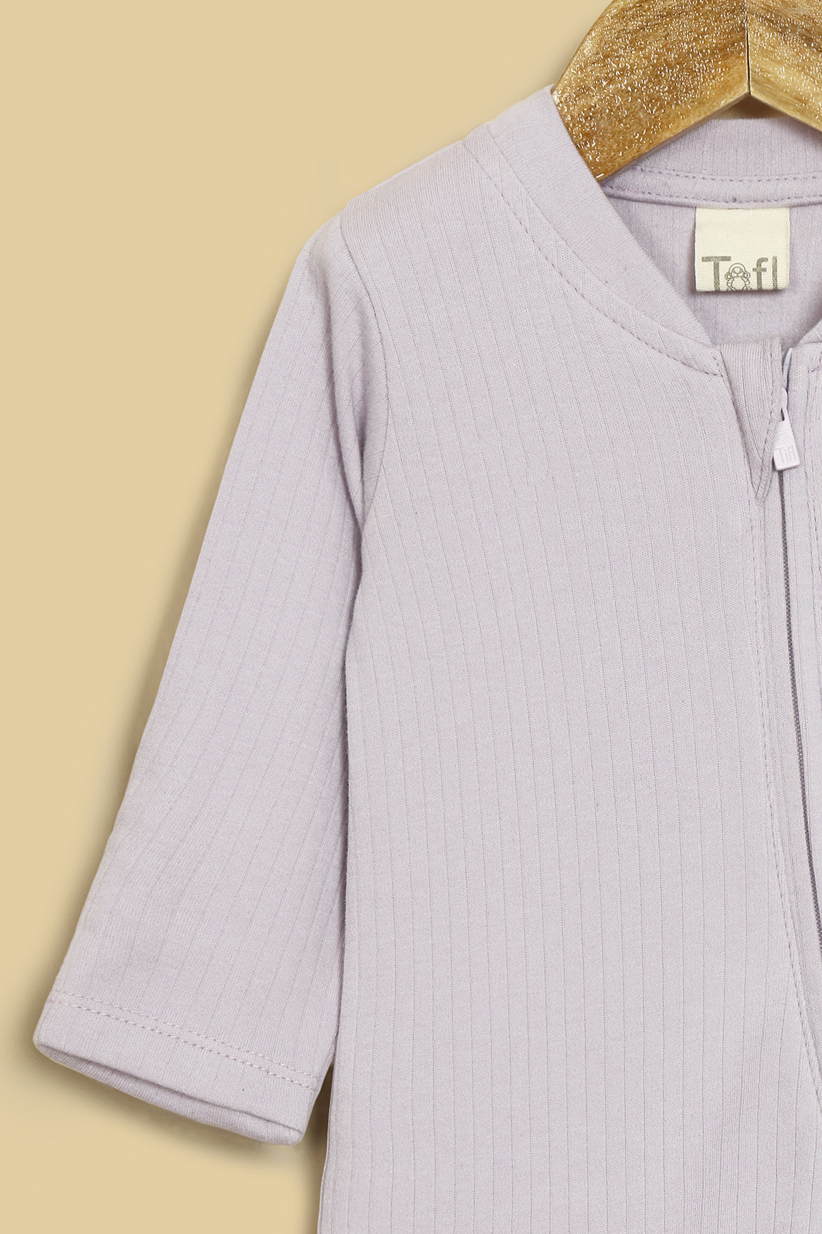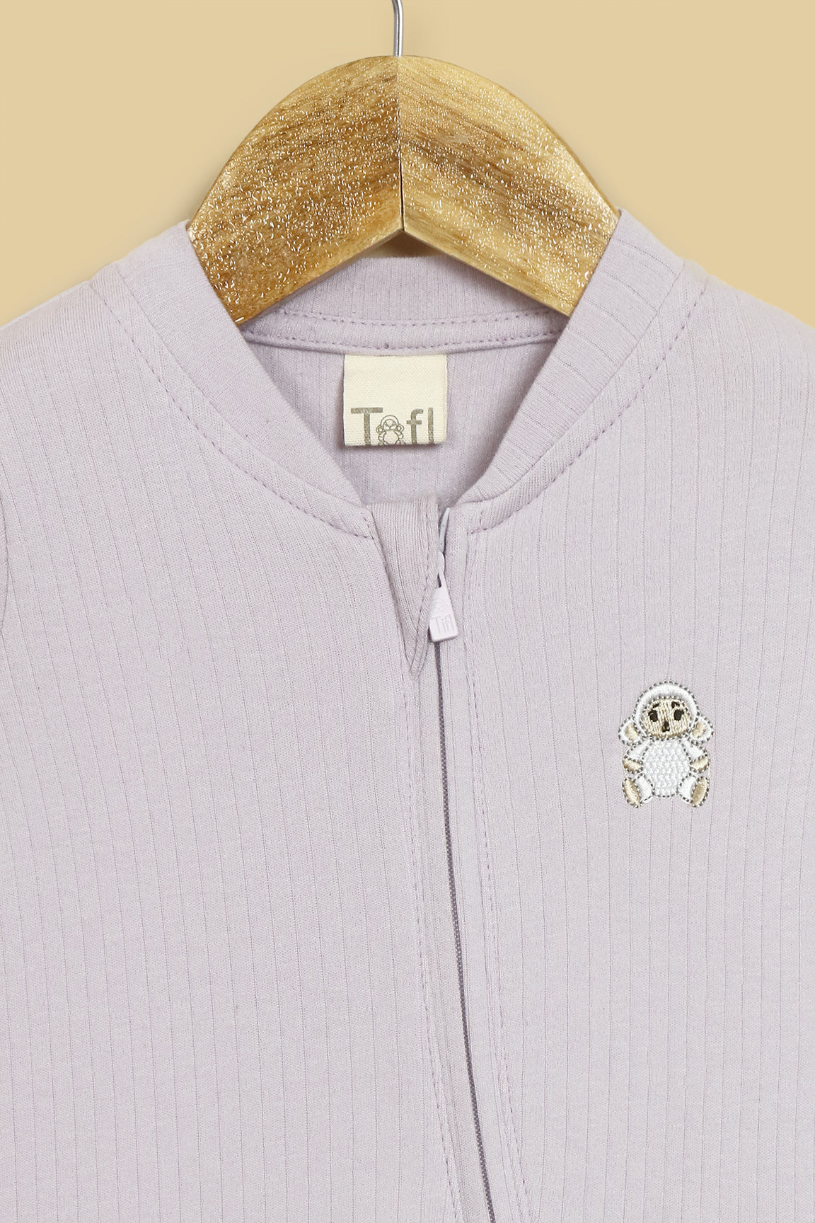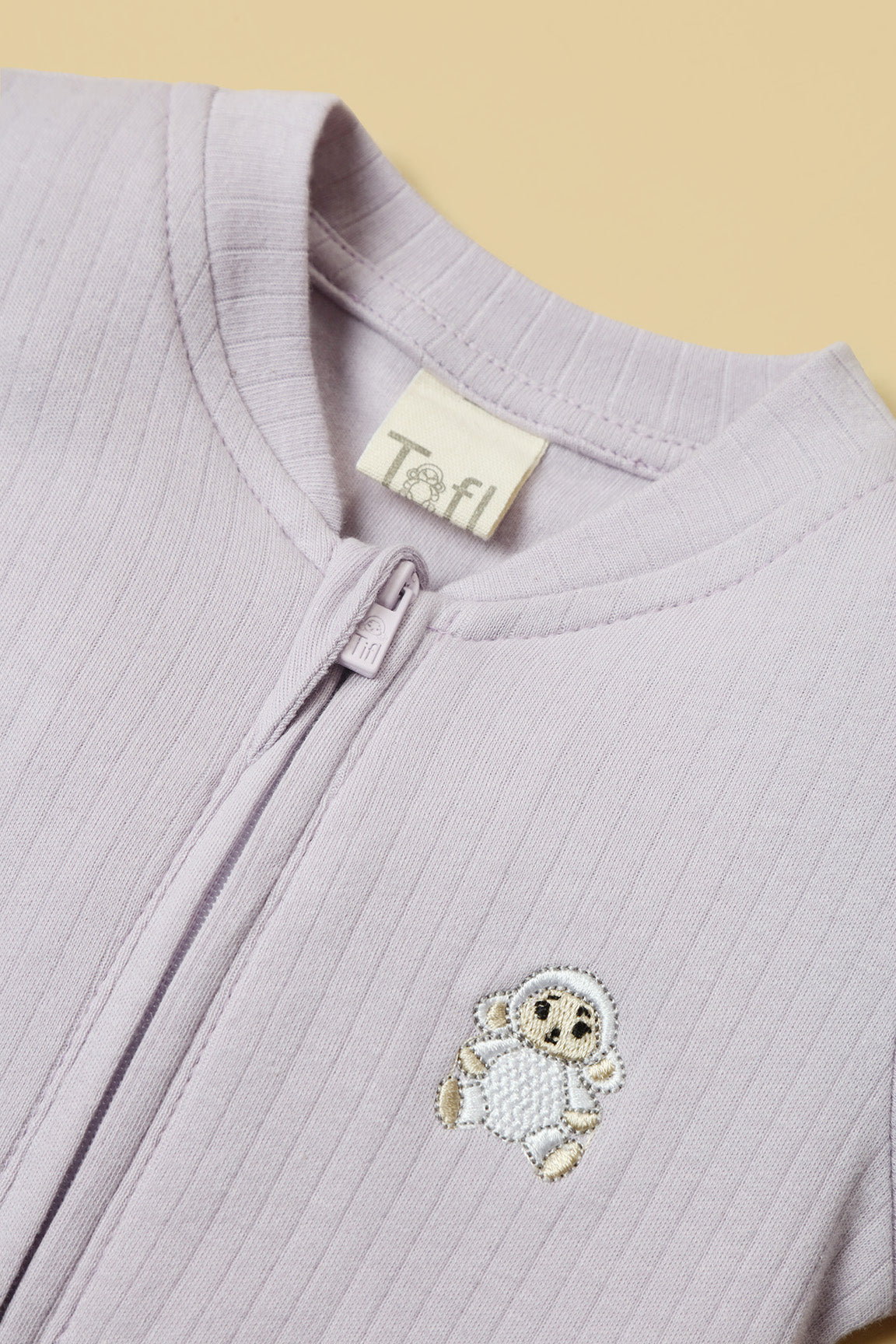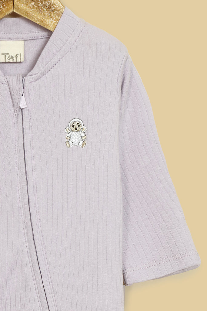 Embroidered Double Zipper Haml Baby Sleepsuit Lilac