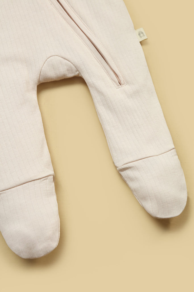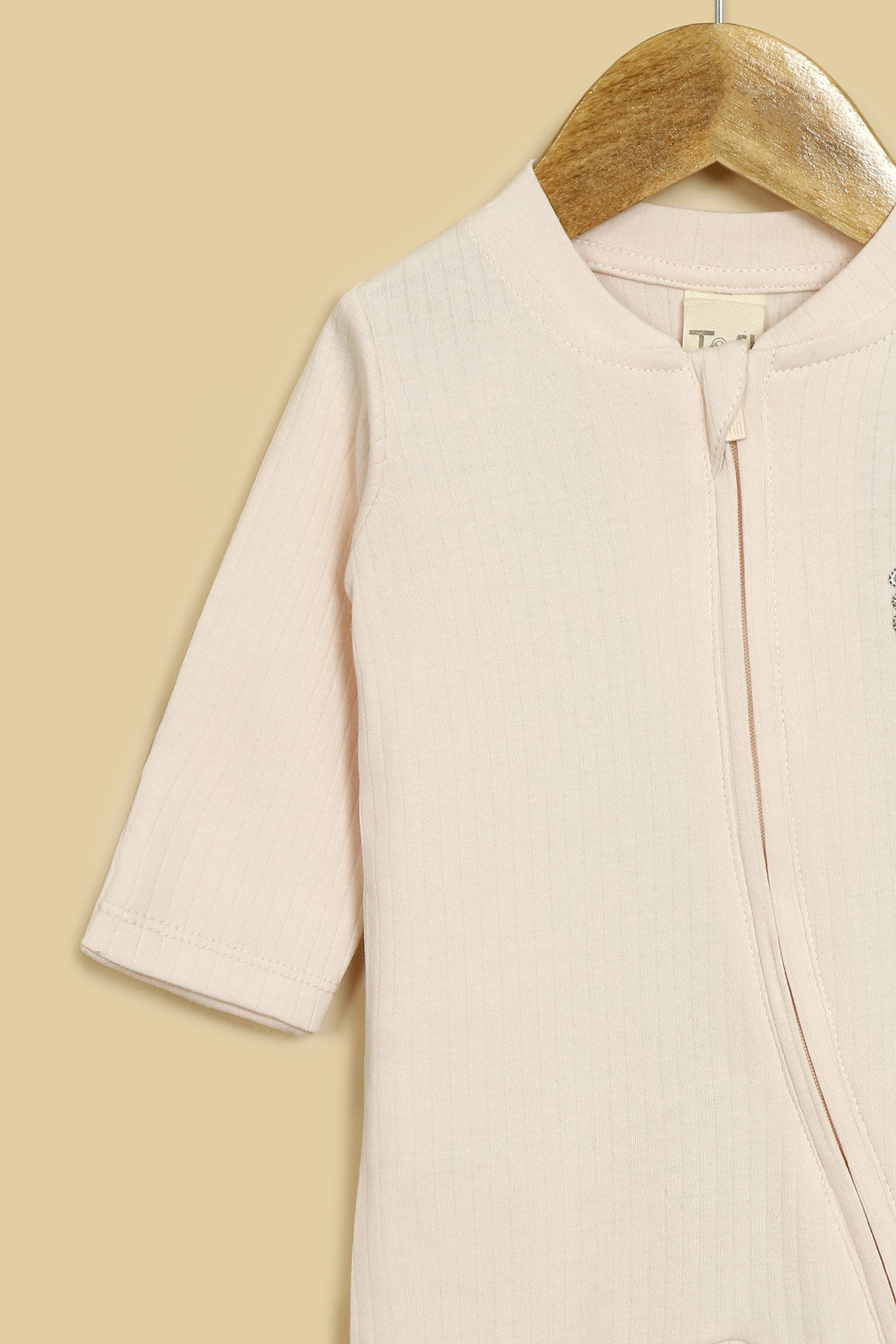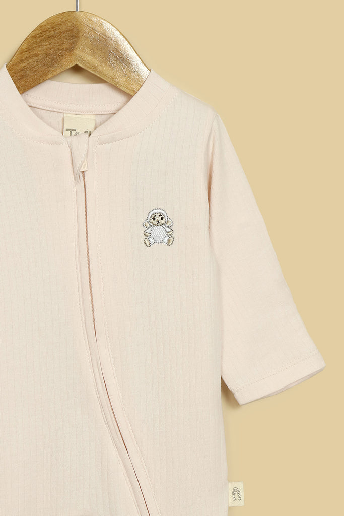 Embroidered Double Zipper Haml Baby Sleepsuit Pink