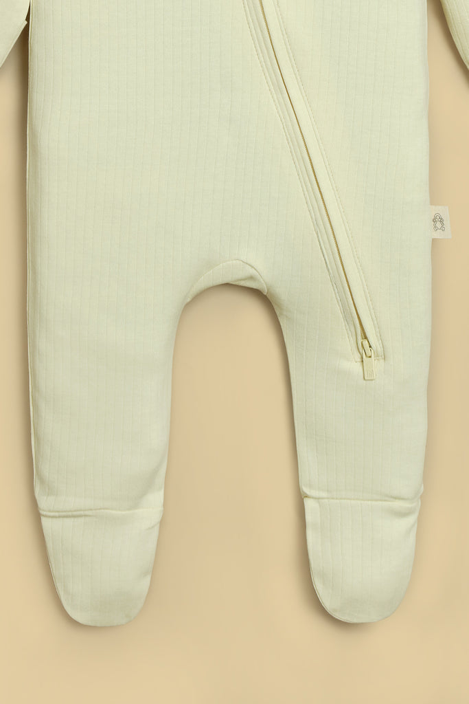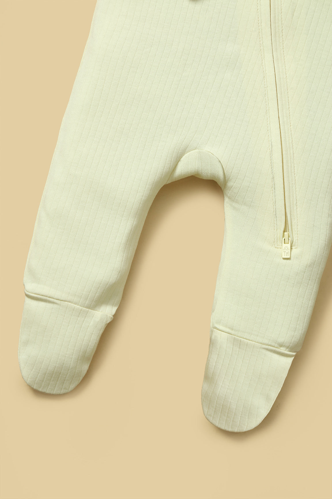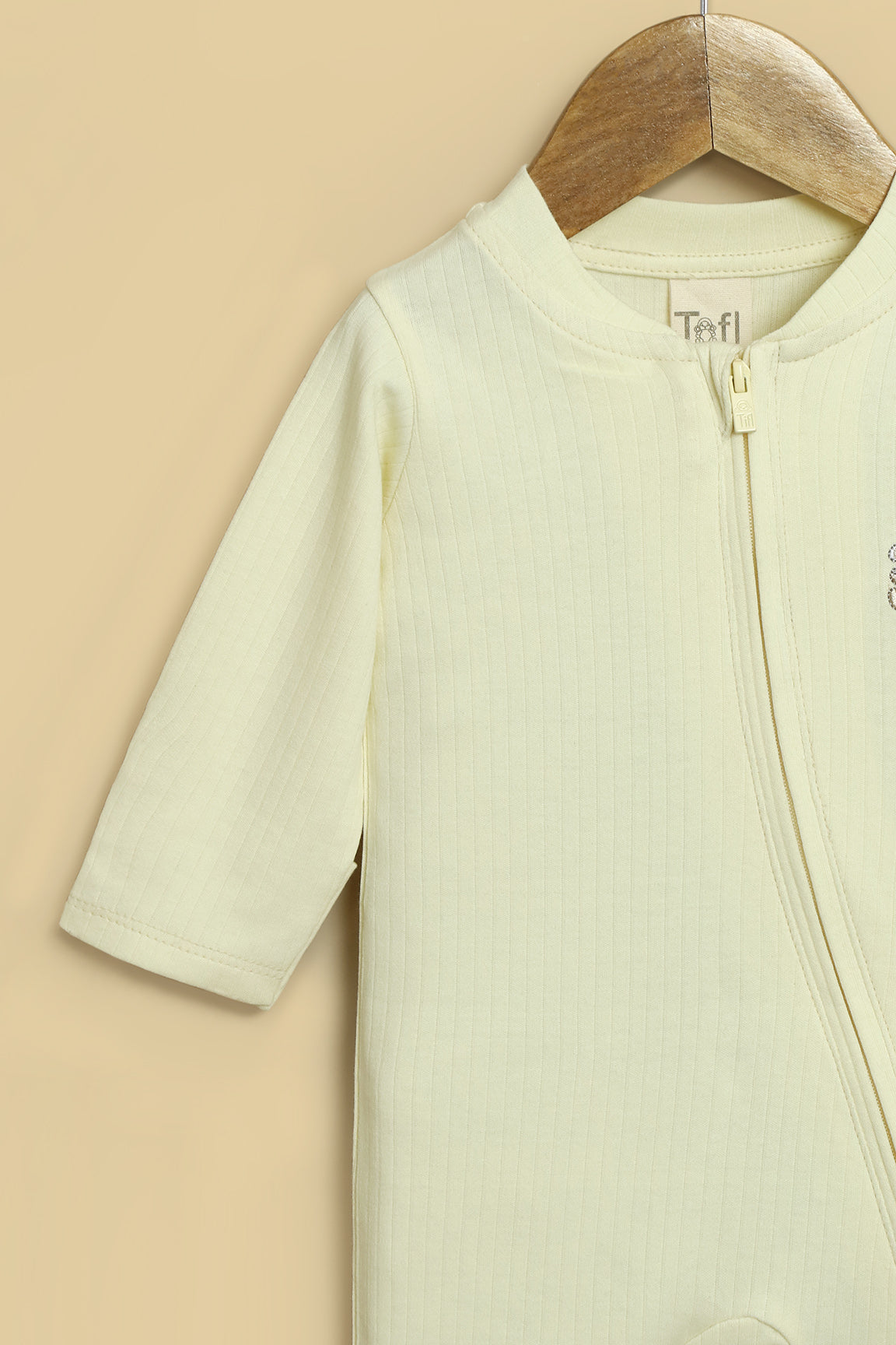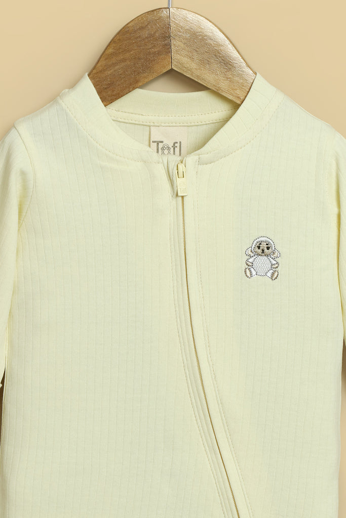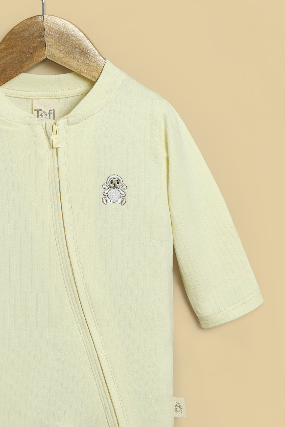 Embroidered Double Zipper Haml Baby Sleepsuit Yellow