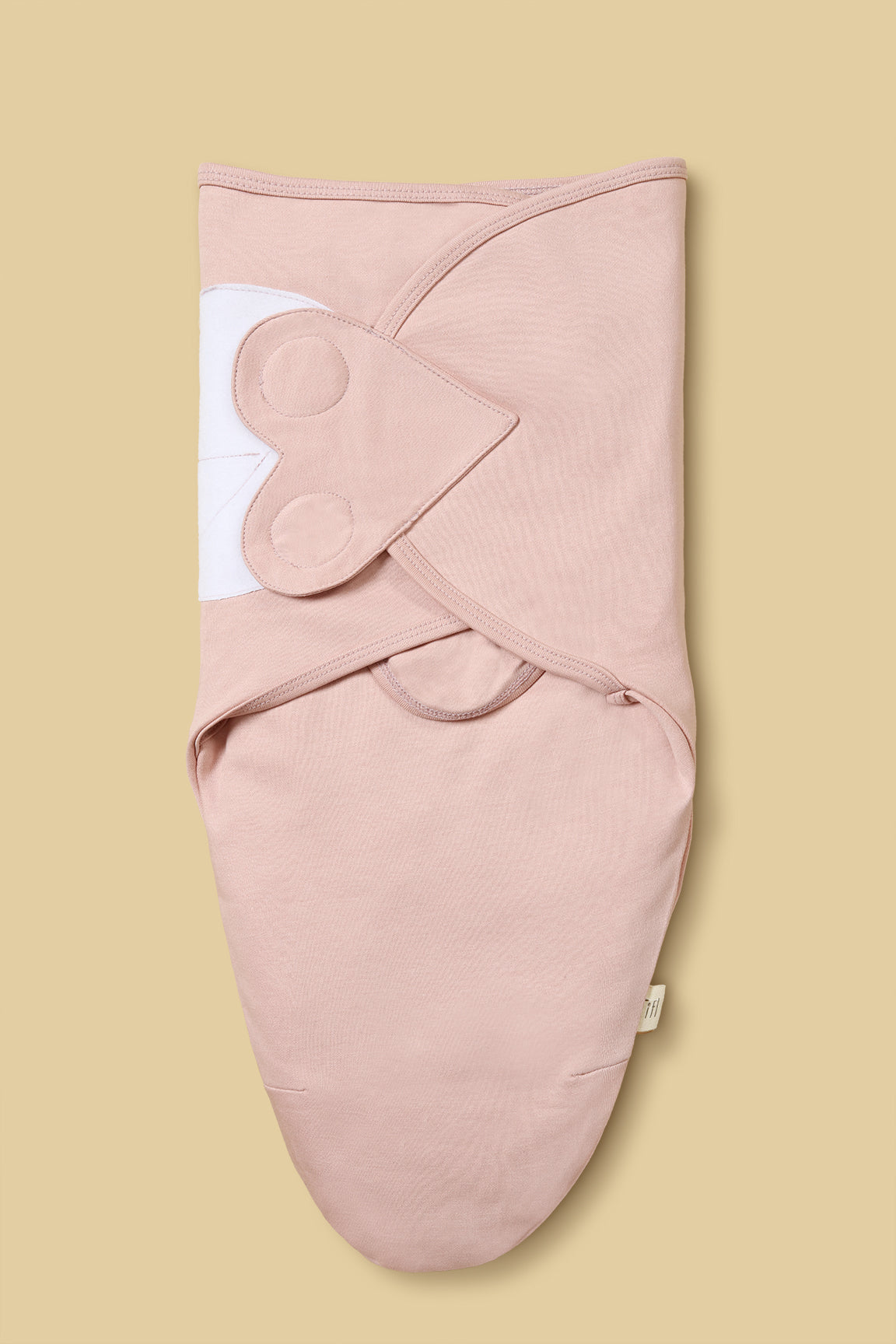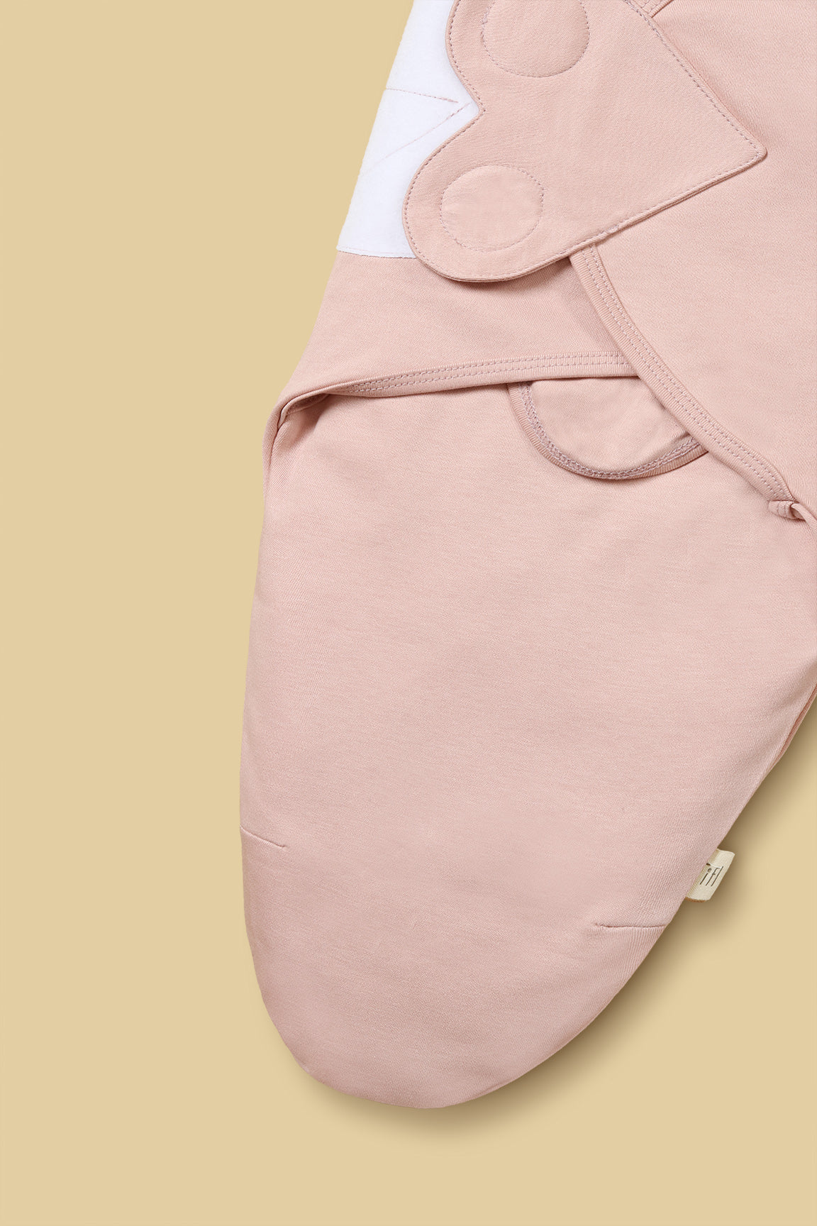 Crafted from ultra-gentle, breathable cotton fabric, this swaddle ensures a snug and soothing sleep environment for newborns. Its adorable wing-style design makes swaddling effortless while keeping your baby secure and comfortable. The pastel tone adds a calm, modern touch — perfect for both daily use and gifting.