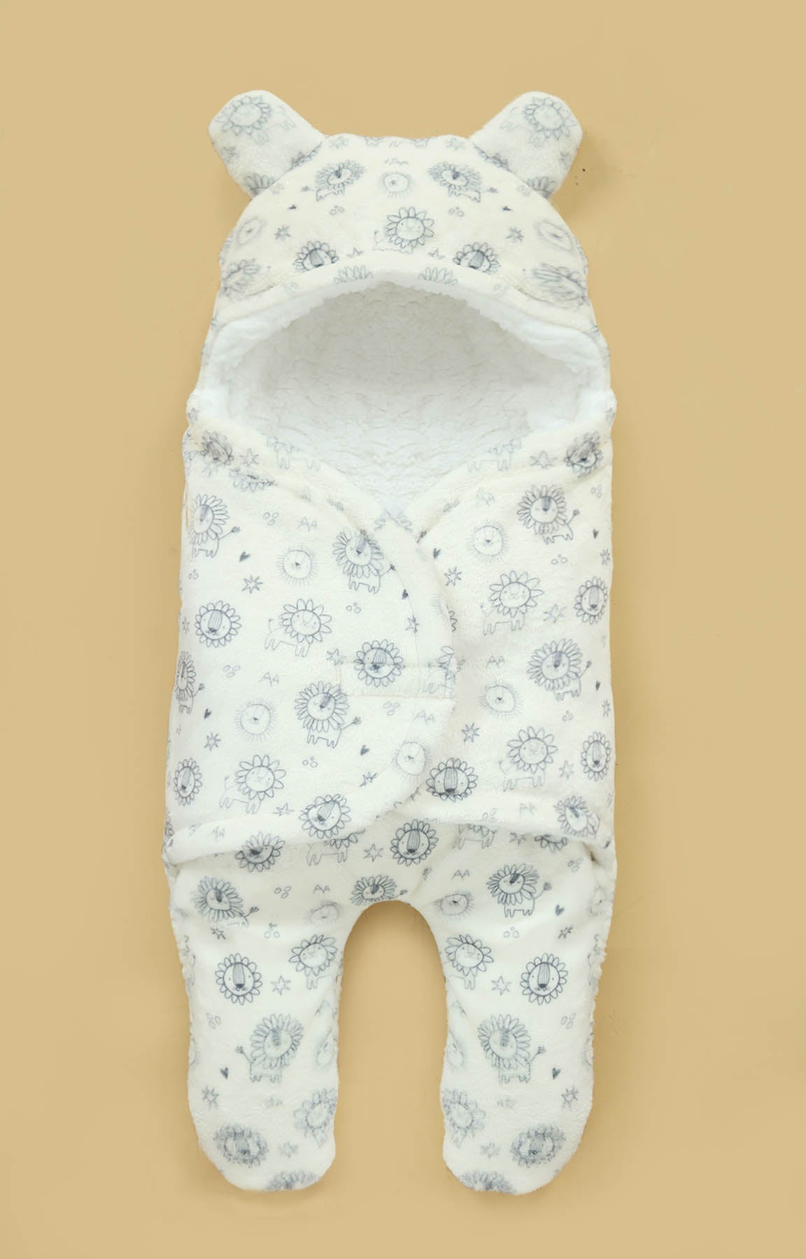 A soft, warm embrace for your baby with sherpa-lined swaddle which keeps your little one warm and secure.