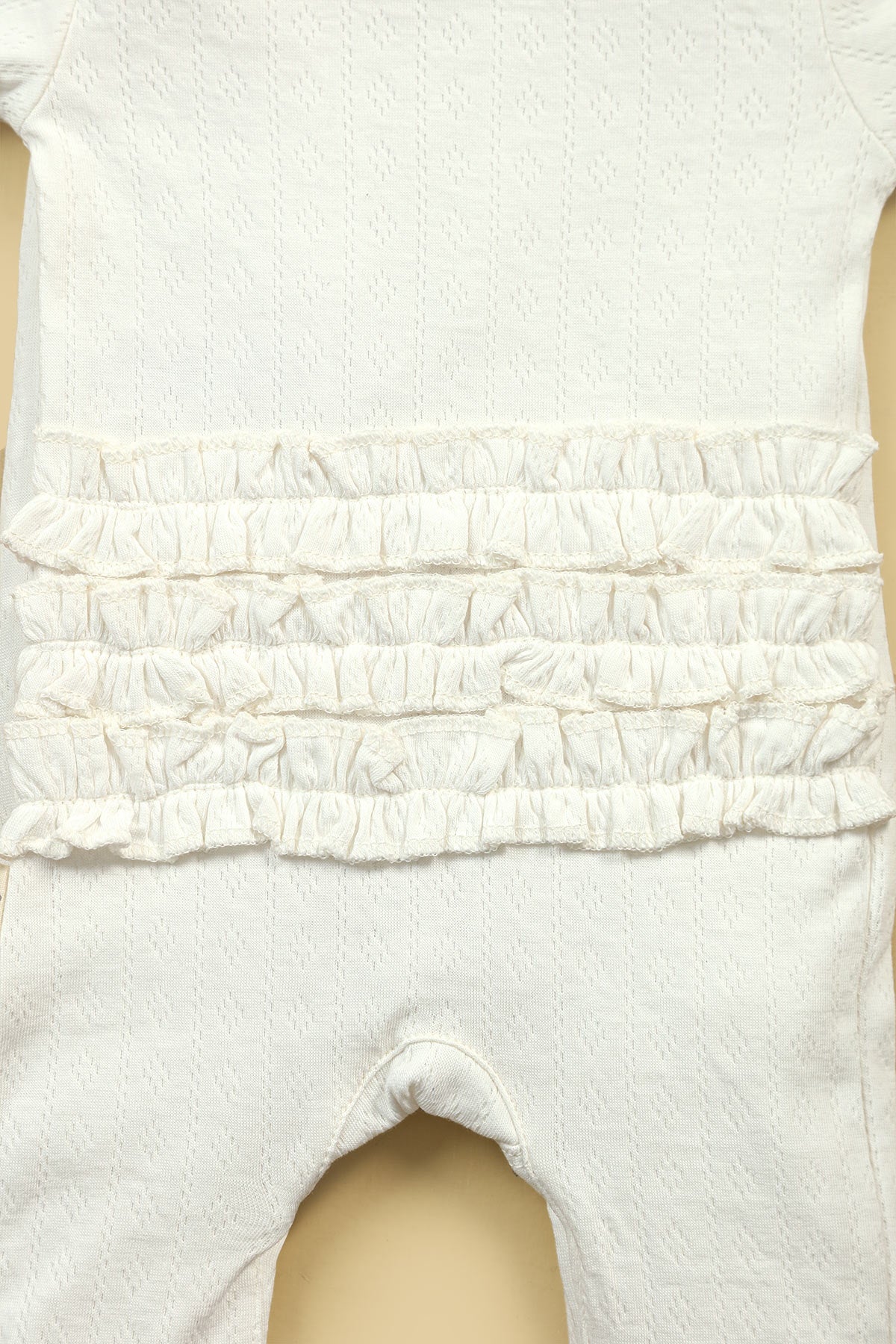 This knitted jacquard baby Rompers is made from soft, cozy fabric to keep your little one comfortable, features Sheep embroidered motif with soft mesh fusing on the back to protect baby’s skin form rashes.
